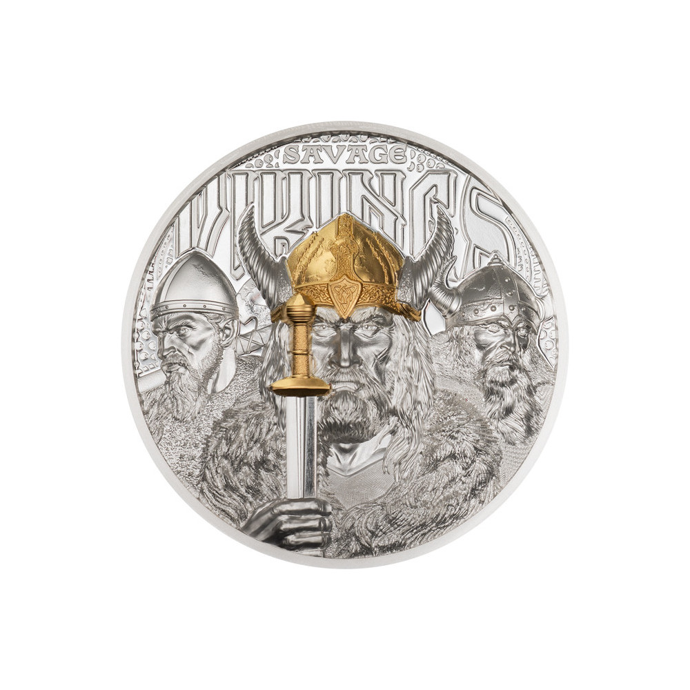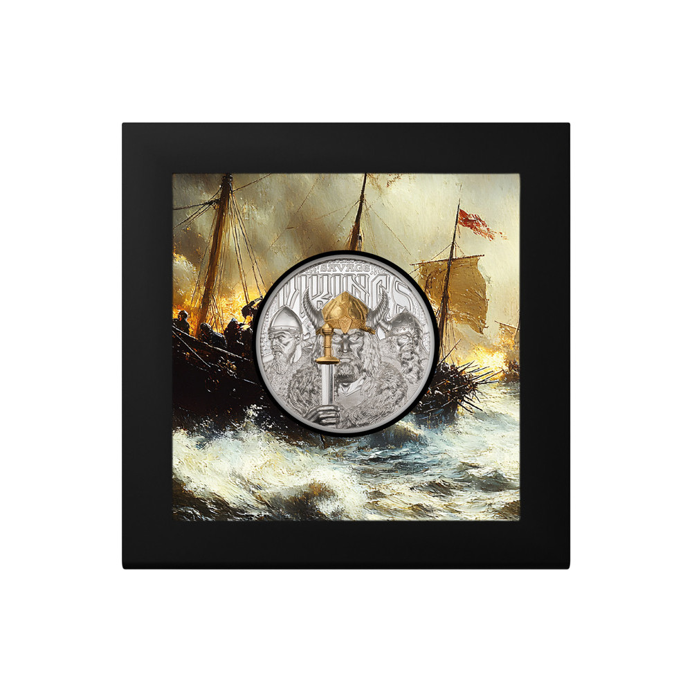 Ez a lenyűgöző, 3 unciás ezüstérme a legendás vikingek, Ragnar Lodbrok, Ivar Csont nélkül és Björn Ironside előtt tiszteleg. A szelektív aranyozással készült, magas domborművű érme megörökíti az északi harcosok erejét, bátorságát és mitikus örökségét. Ez a remekmű elegáns dobozban, eredetiségigazolással együtt érkezik, és világszerte mindössze 500 darabra van limitálva.