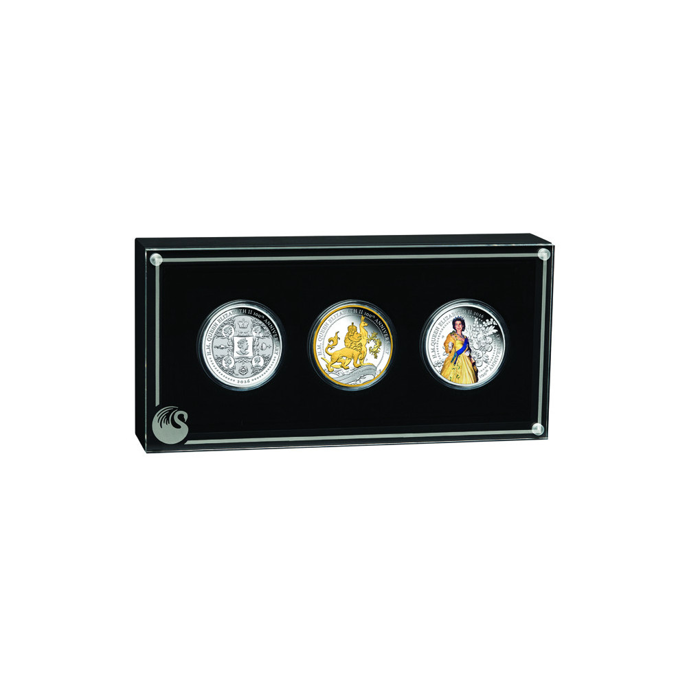 Ünnepelje Őfelsége, II. Erzsébet királynő születésének 100. évfordulóját a Perth Mint három érméből álló, korlátozott példányszámú, tekintélyes készlettel.