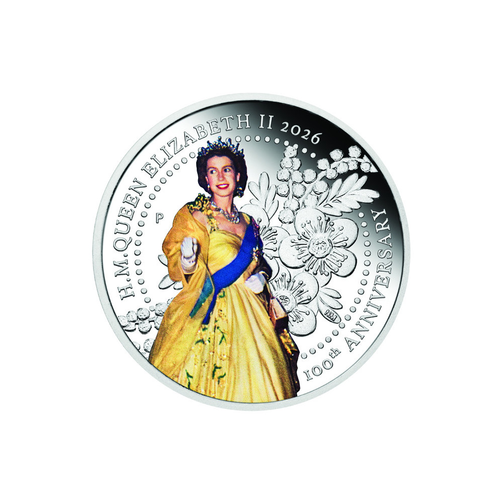 - Színes érme (teljes verdei példányszám: 2000), amely II. Erzsébet királynőt ábrázolja 1954-es ausztráliai körútjának híres fonott ruhájában, a háttérben stilizált fonott brossal.