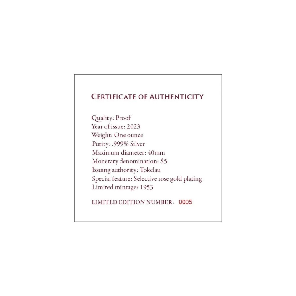 A nagyszabású felvonulás és az ősi szertartás napján, 1953. június 2-án a londoni Westminster-apátságban II. Erzsébetet királynővé koronázták. A 2023-as év ennek a történelmi eseménynek a 70. évfordulóját jelzi, és mi ezt az alkalmat egy olyan érmével ünnepeljük, amely biztosan felkelti a királyi és numizmatikai gyűjtők figyelmét egyaránt! Az 1 uncia 99,9%-os tisztaságú ezüst és a szelektív rózsaarany bevonat fenséges szintézise egy lenyűgöző, de megfizethető érmét alkot! OJelentőségteljes és feltűnő, szimbolikával teli dizájnnal rendelkezik. Középpontjában II. Erzsébet királynő áll, aki palástot és császári koronát visel, kezében almával és jogarral. A hátteret a Westminster-apátság pompásan mintázott ablaka uralja - szelektíven, a valódi rózsaarany lágy és gazdag árnyalataiból készült!